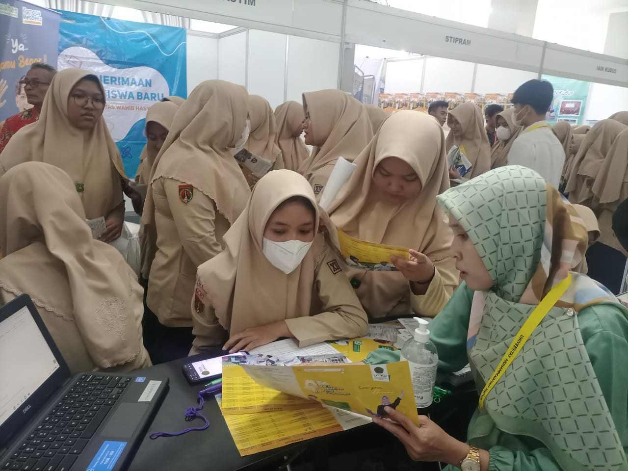 Salah satu stand yang menyita banyak perhatian siswa adalah Stand Universitas Muhammadiyah Kudus. Ratusan siswa terlihat menggali informasi seputar program studi yang terdapat di UMKU, biaya studi, dan tawaran beasiswa. Puluhan siswa juga terlihat langsung daftar secara on line langsung di lokasi stand. Ria Puspita salah satu pengunjung dari SMA N 1 Gebog juga berminat mendaftar D3 Keperawatan UMKU. “Saya ingin membantu orang-orang yang sakit, karena itu ingin masuk di D3 Keperawatan UMKU, selain deket, kampusnya juga bagus” ungkapnya.