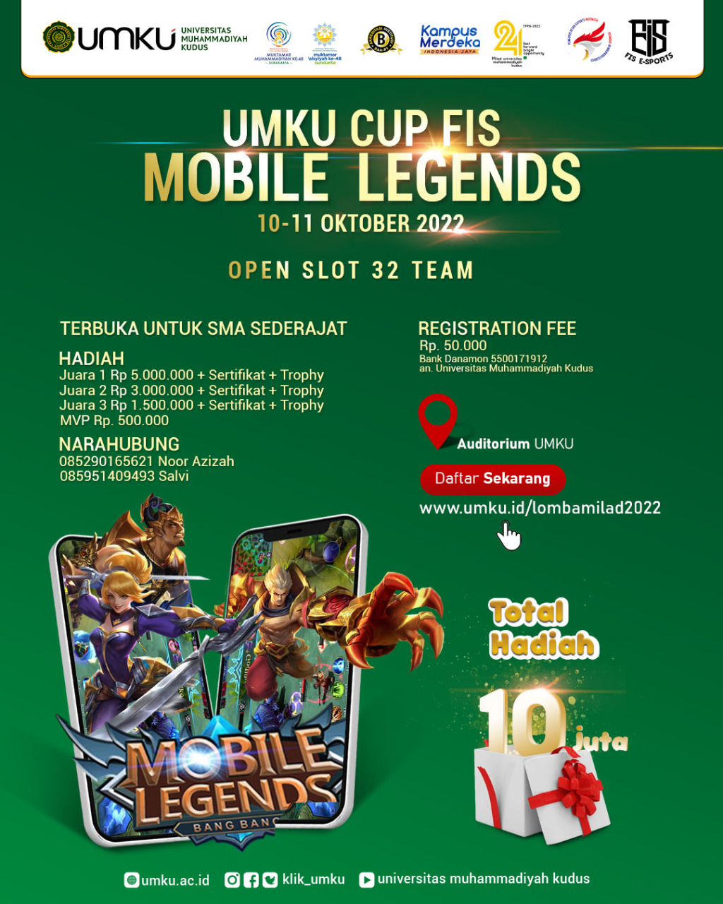 Lomba Mobile Legend dalam rangka Milad Univ Muh Kudus sudah dibuka 🥳